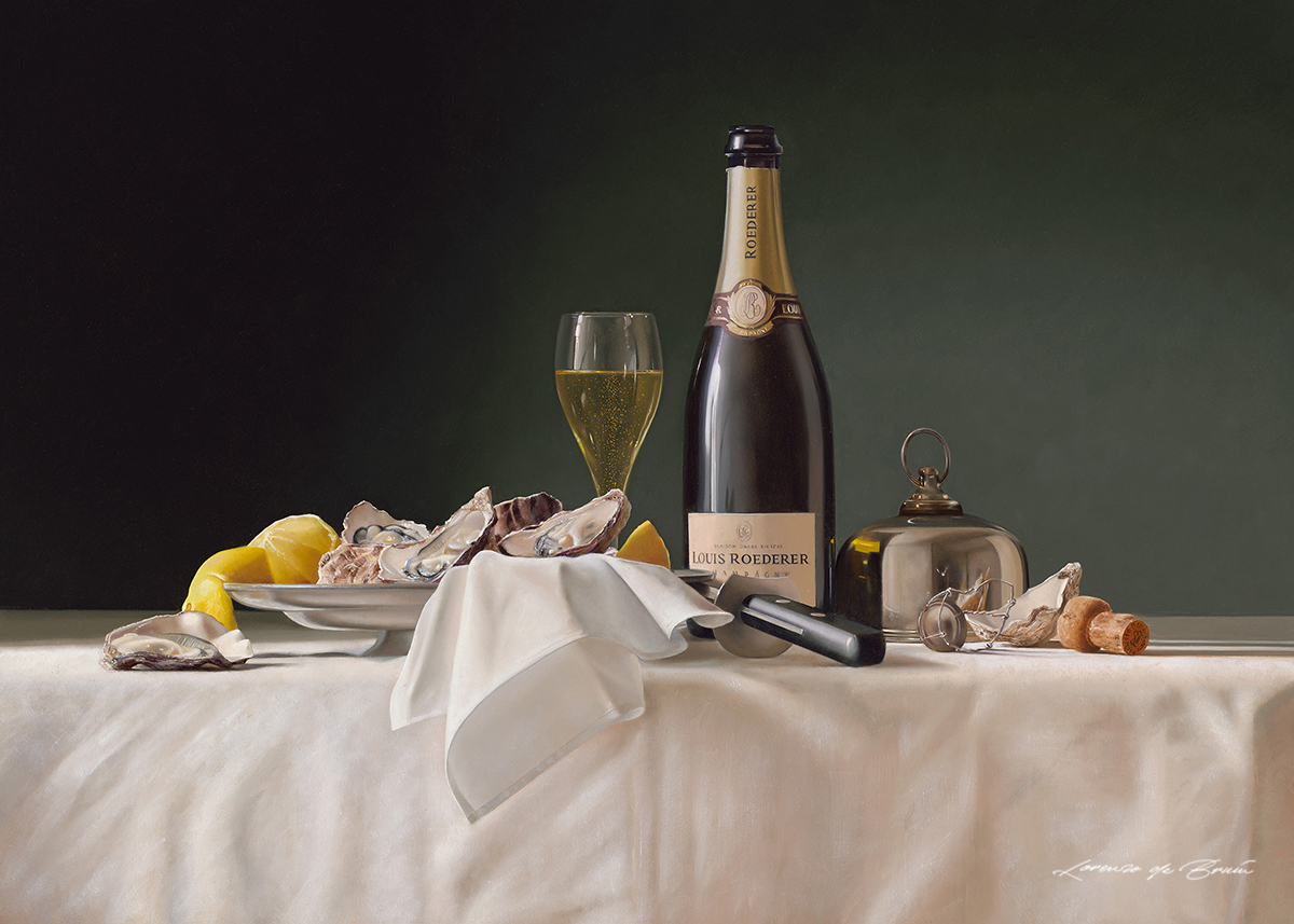 Oesters & Champagne 50 x 70 cm olieverf op paneel.